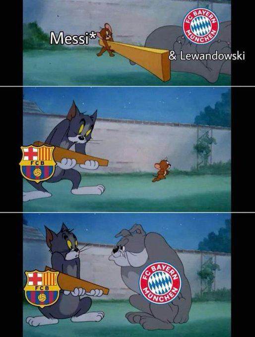 惹拜仁的是梅西,挨揍的是巴萨↑